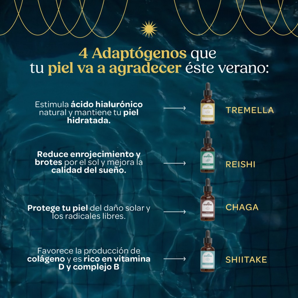 La verdadera protección empieza antes de una crema: en lo que nutrimos, en cómo descansamos, en cómo regulamos la inflamación y el estrés. Los adaptógenos actúan como reguladores del terreno biológico.